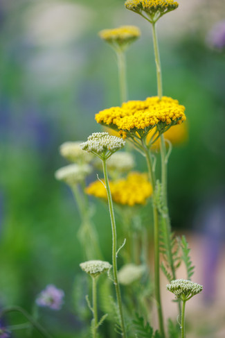 강렬한 햇살 속에서도 지치지 않고 여린 잎 사이에서 끊임없이 노란 꽃을 피워내는 솔잎금계국 '문빔'은 정원식물의 새로운 발견입니다. 라벤더 플랜터 한 코너에 무심히 심어놓고 다들 감빡 잊고 있었는데 한 여름의 뜨거운 햇살에도 아랑곳 하지 않고 로즈마리의 든든한 동반 식물이 되어 주고 있네요.
