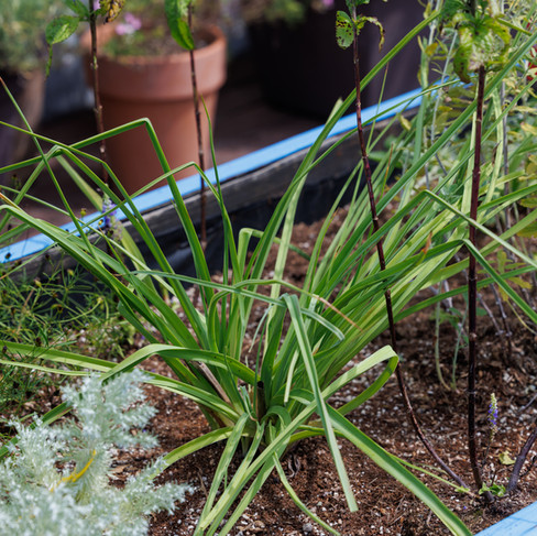 가늘지만 유연하고 단단해서 옥상정원의 바람에 굴복하지 않는 골든볼과 알리움 드럼스틱의 묵대도 제거합니다. 식재할 때 식물 줄기가 꺾여 있어 춘희 어르신이 '내 허리처럼 구부정하네'라고 말씀하신 기억이 나는데요, 마치 고무밴드처럼 탄력성을 자랑하며 여름 태풍도 굳건히 견뎌냈습니다. 노란 사탕 같은 골든 볼은 비록 색은 바랬지만 제거하지 않고 남겨두면 정원이라는 커다란 캔버스에 검은 점을 찍는 회화적 효과를 연출할 수도 있죠.